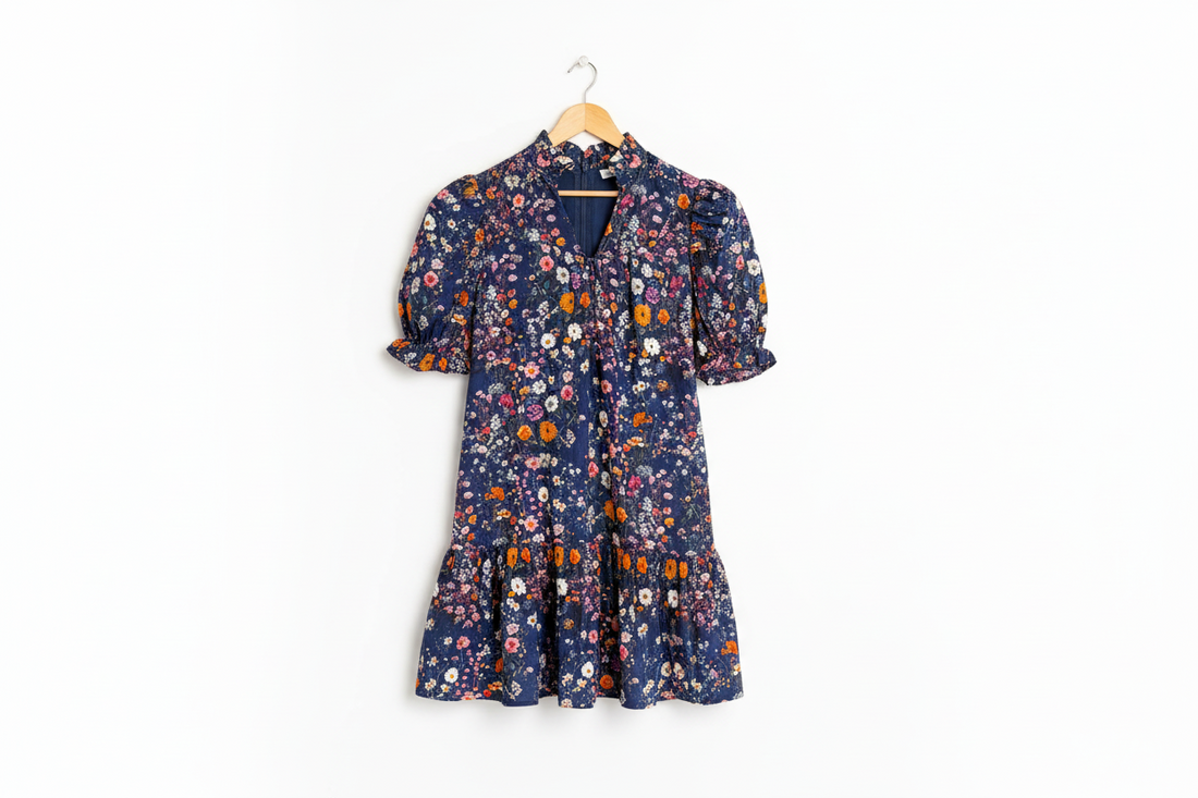 Wild Daisy Floral Split Neck Short Puff Sleeve Mini Dress
