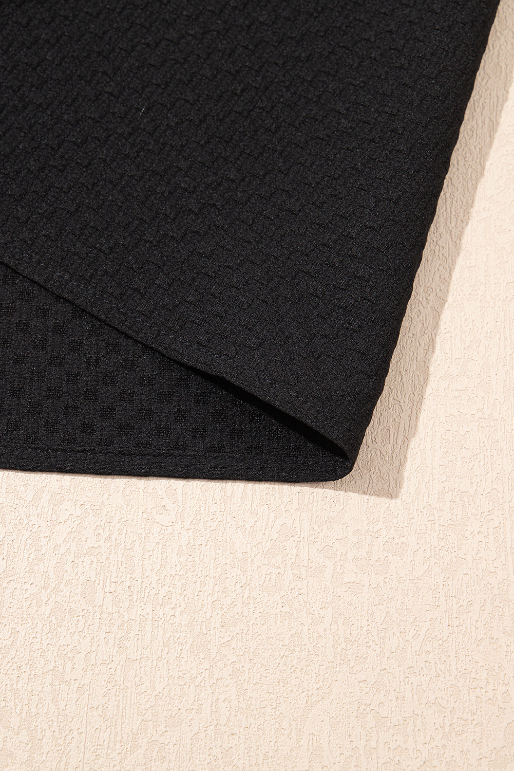 Black Feather Bubble Sleeve Patchwork Textured Blouse