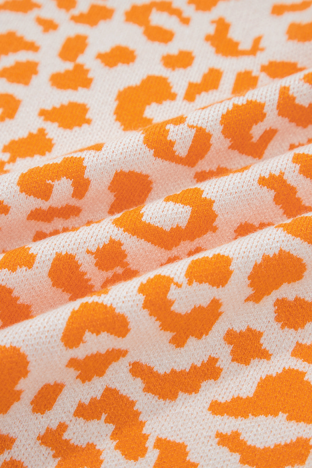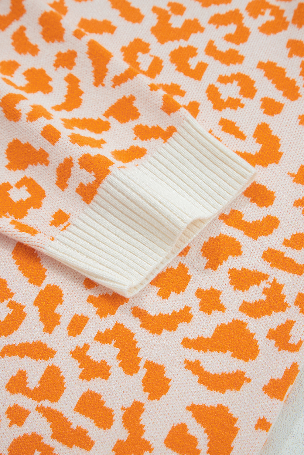 Leopard Print Drop Shoulder Chunky Knit Cardigan