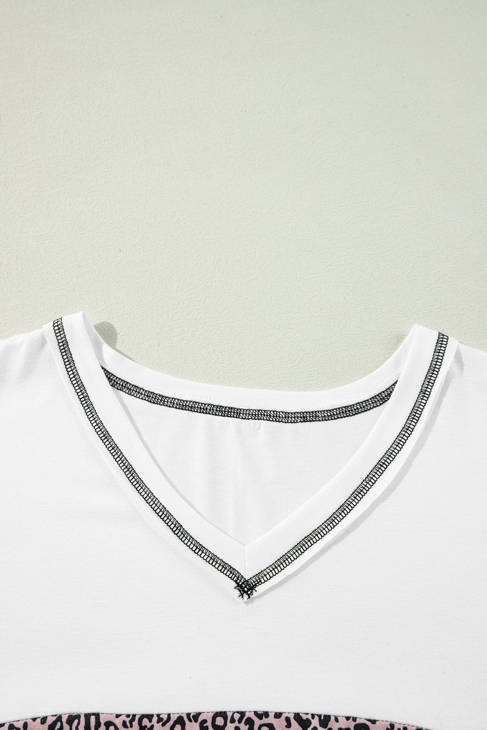 Black Leopard Print Colourblock V Neck Long Sleeve Plus Size Top