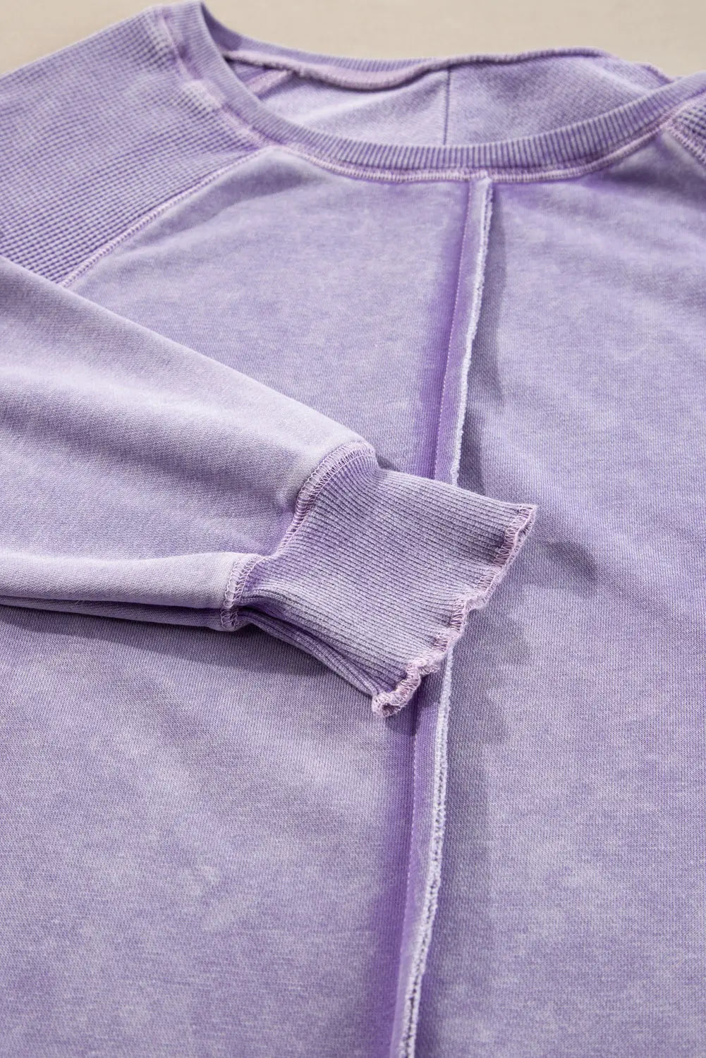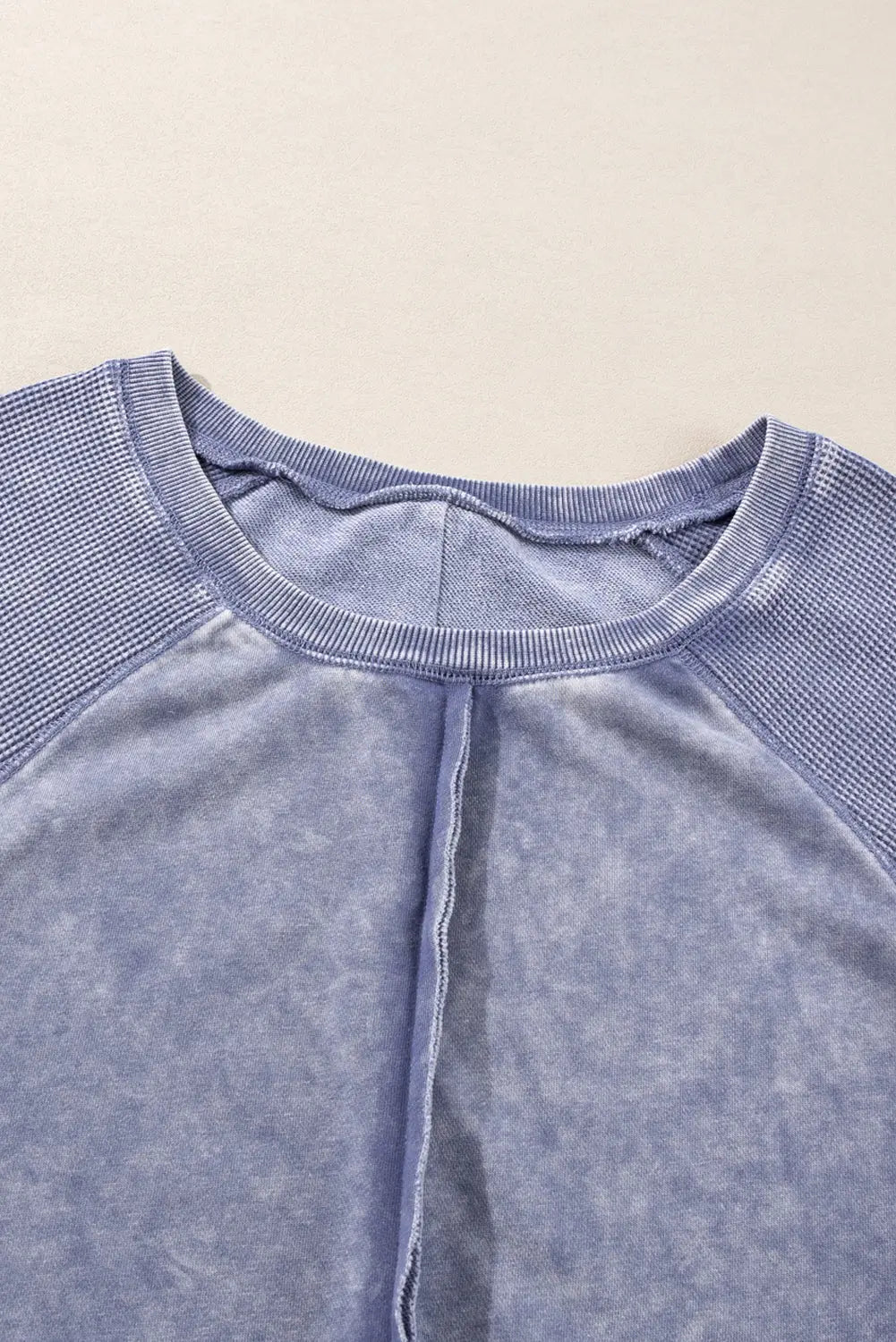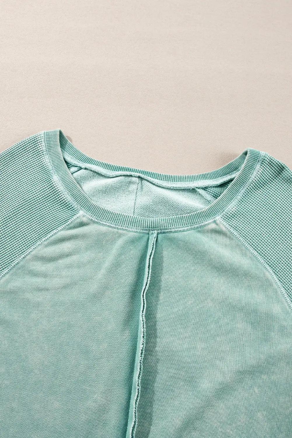 Black Solid Waffle Knit Patchwork Raglan Sleeve Sweatshirt