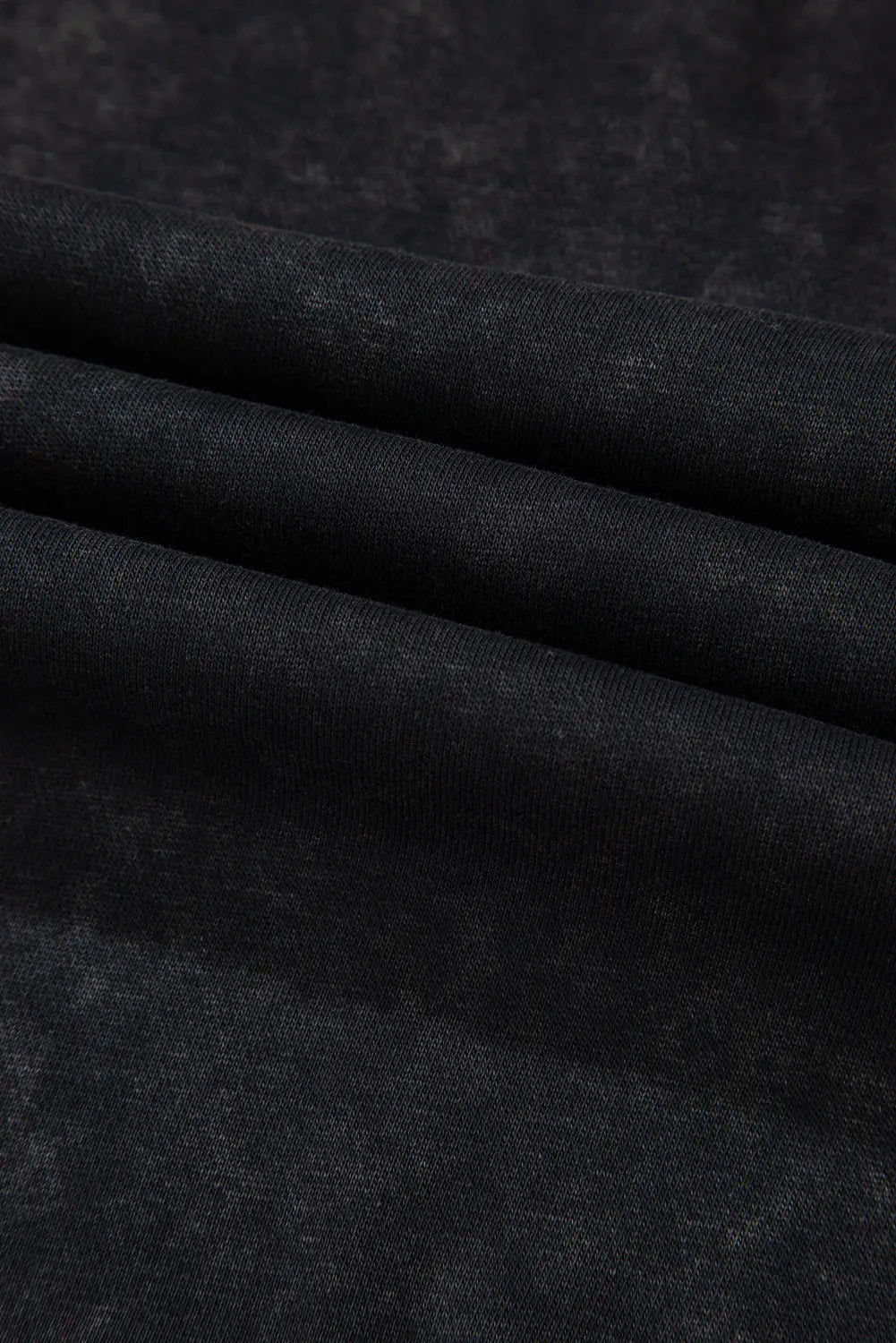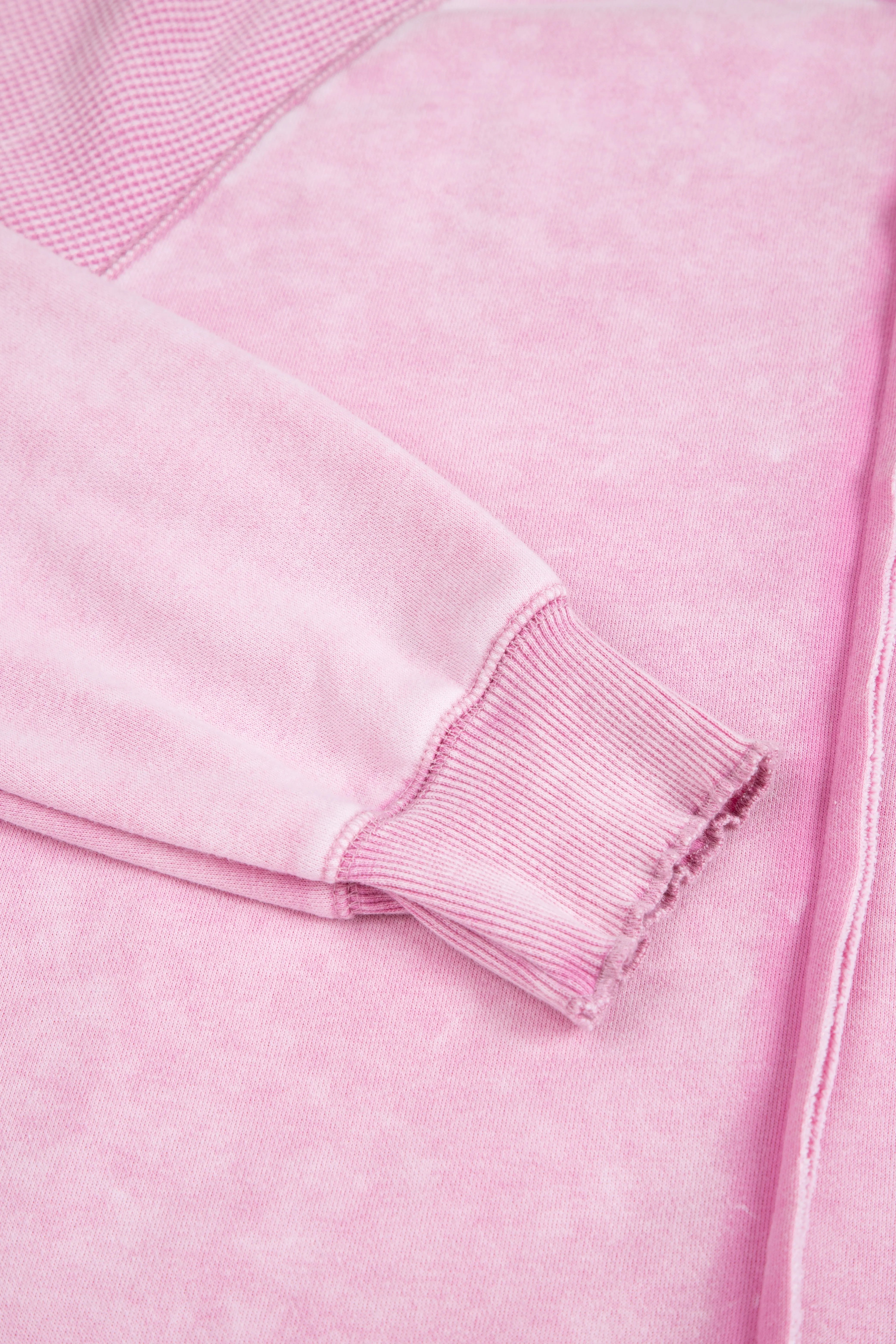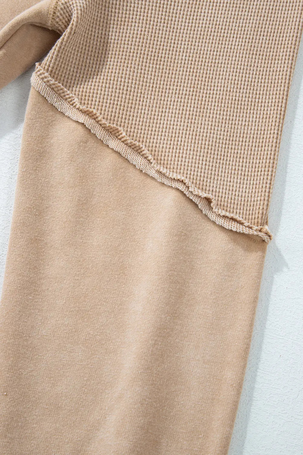 Black Solid Waffle Knit Patchwork Raglan Sleeve Sweatshirt
