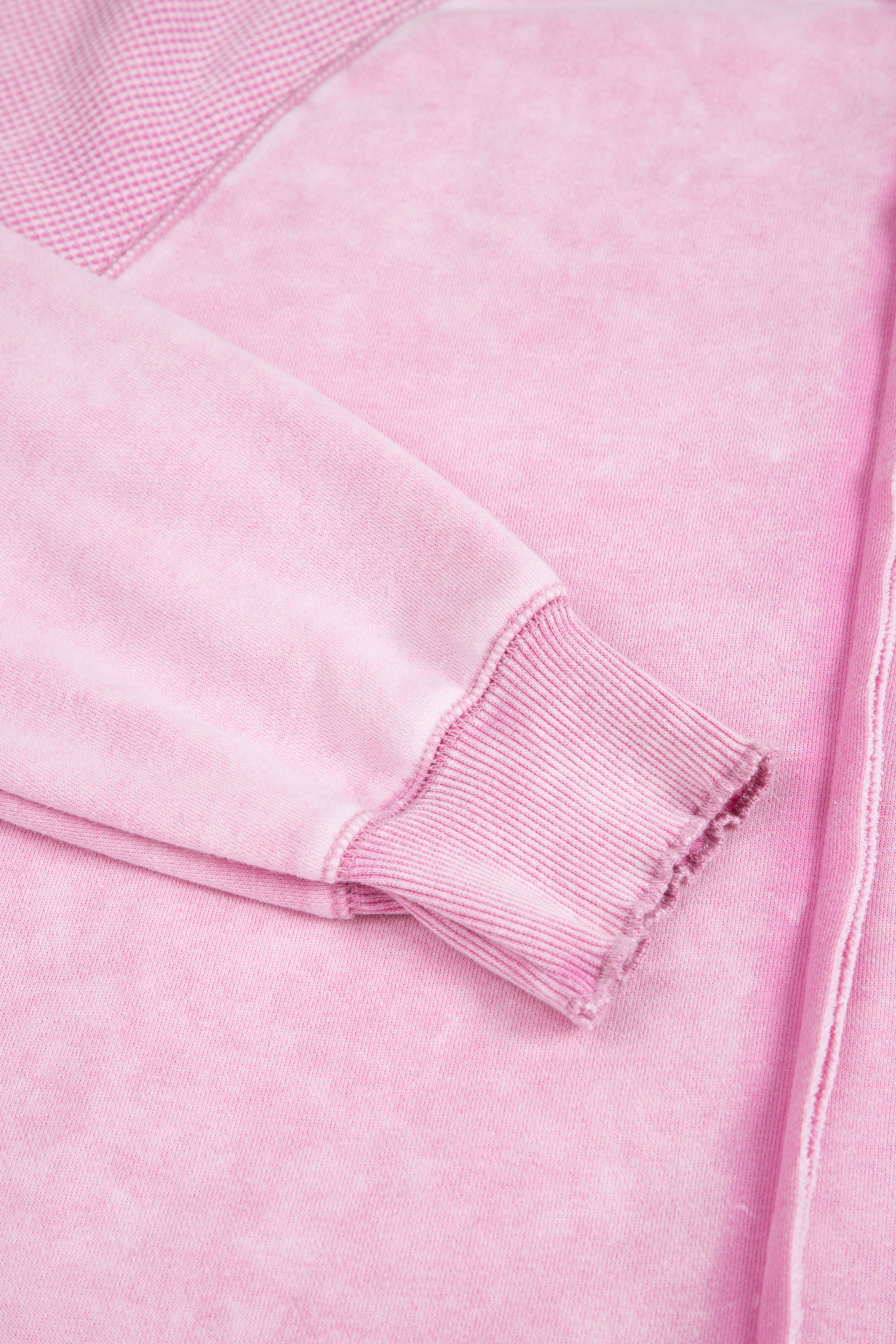 Waffle Textured Patchwork Raglan Sleeve Sweatshirt