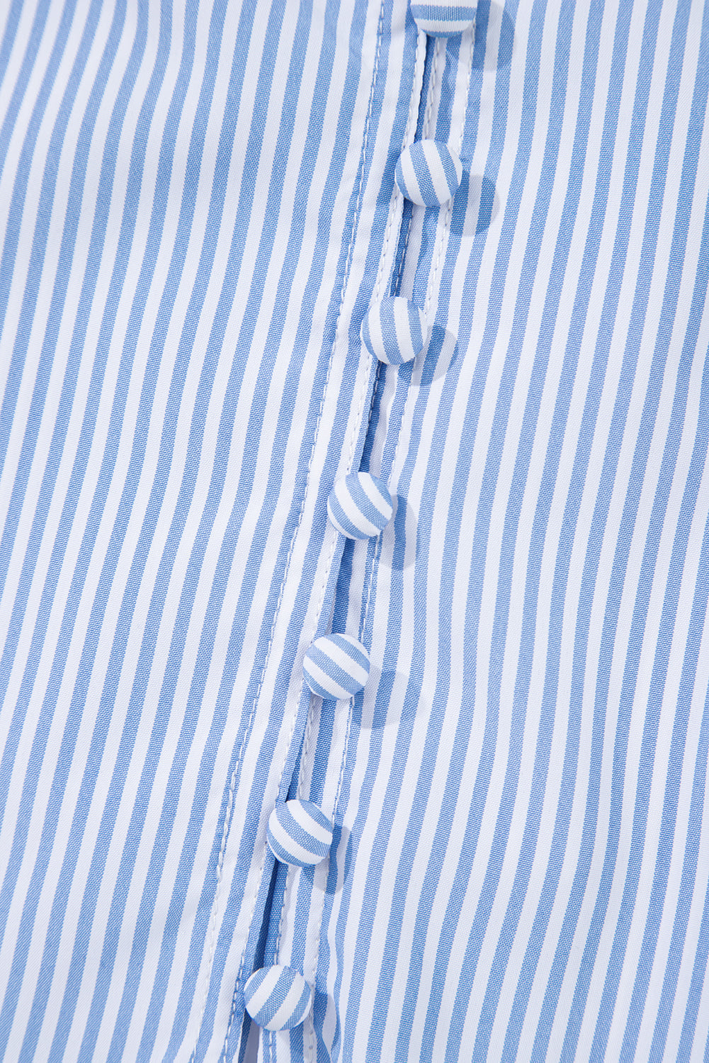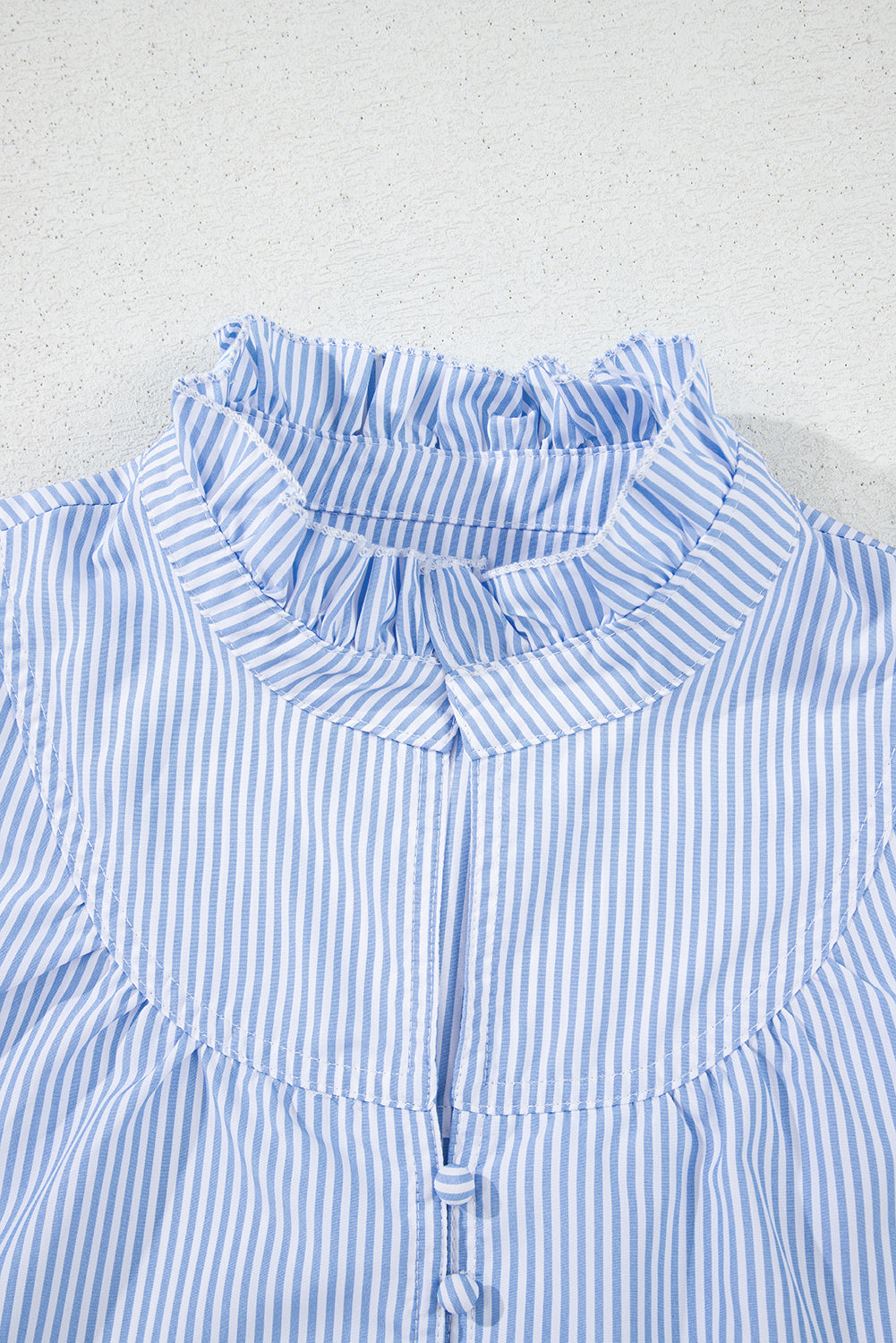 Blue Stripe Ruffled Collar Puff Sleeve Half Buttons Blouse