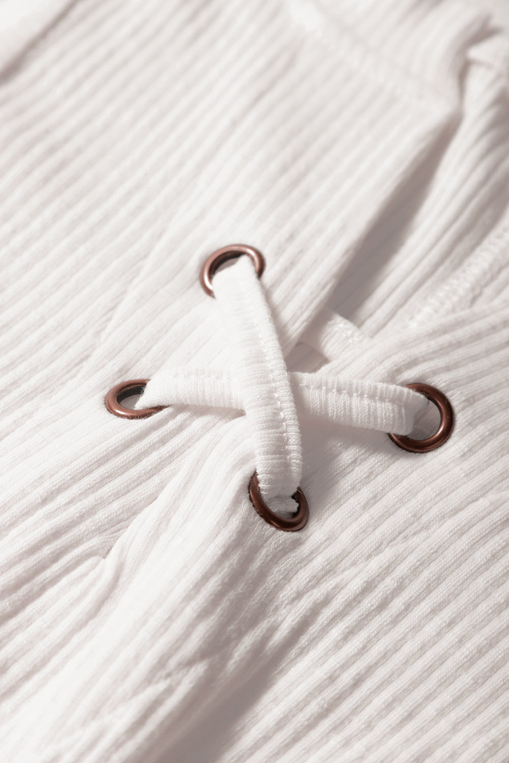 White Ribbed Texture Lace Patchwork Short Sleeve Top