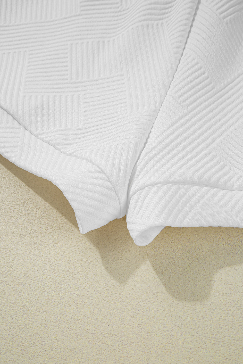 White Textured Half Zip Tank Top Drawstring Shorts Set